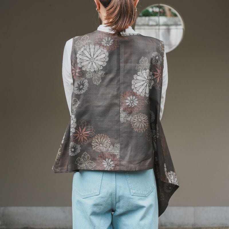 大島紬風の着物からアートピースのようなアシンメトリーなデザインが生まれました。