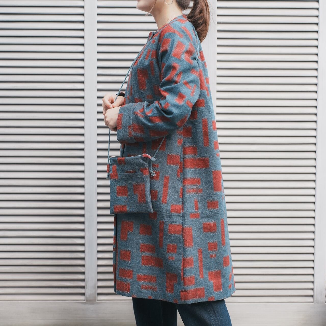モダンな珍しい色柄の着物が、とっても素敵コートになった、他にはない一着。