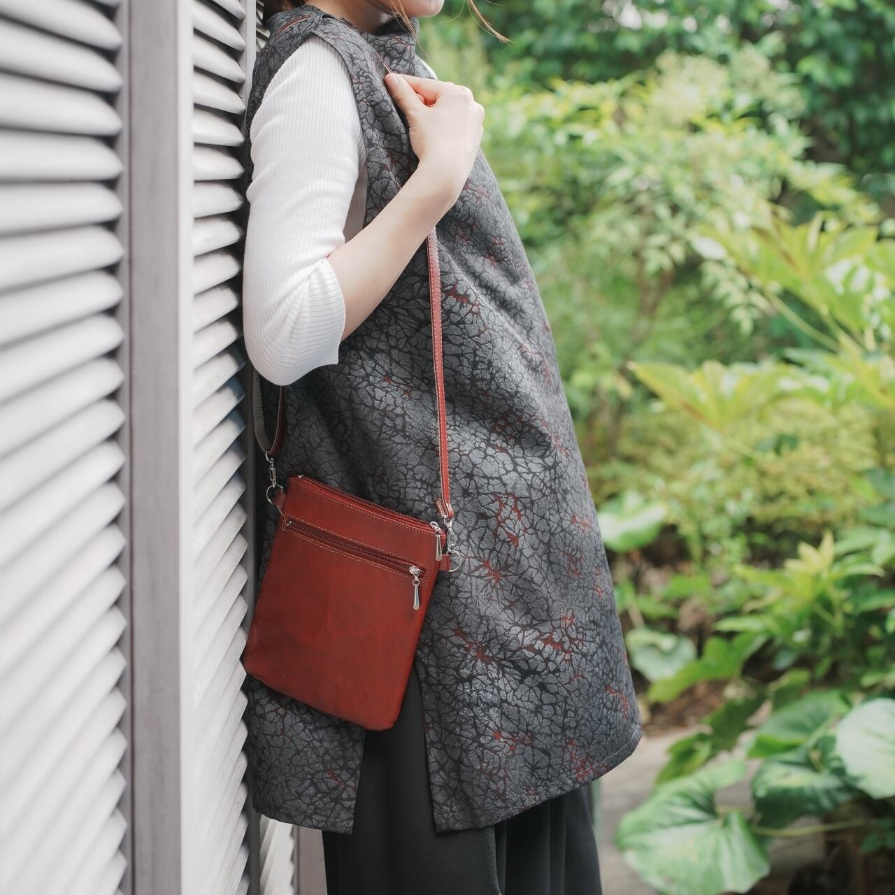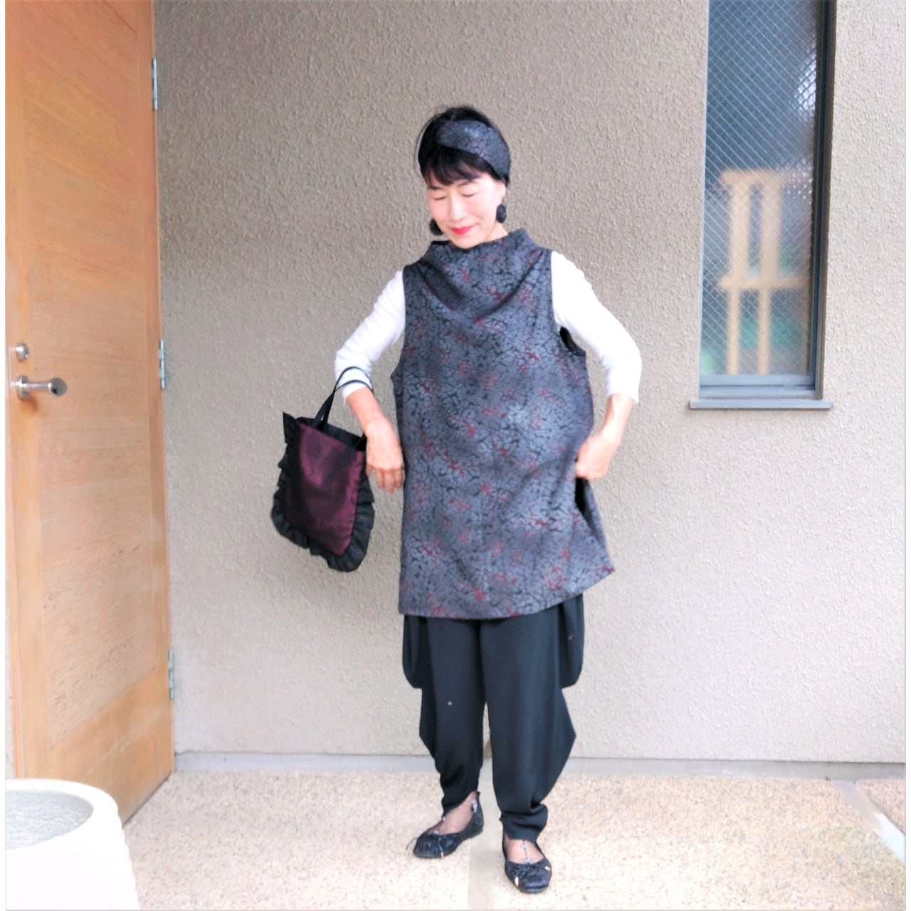 年代物の羽織生地には、漆糸が織り込んであり、上品な光沢がワンランクアップのおしゃれを楽しめます。シワになりにくいのもうれしい。