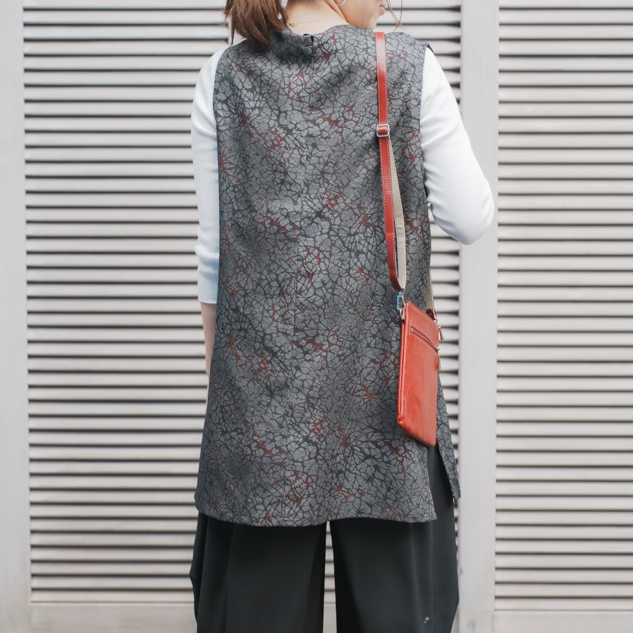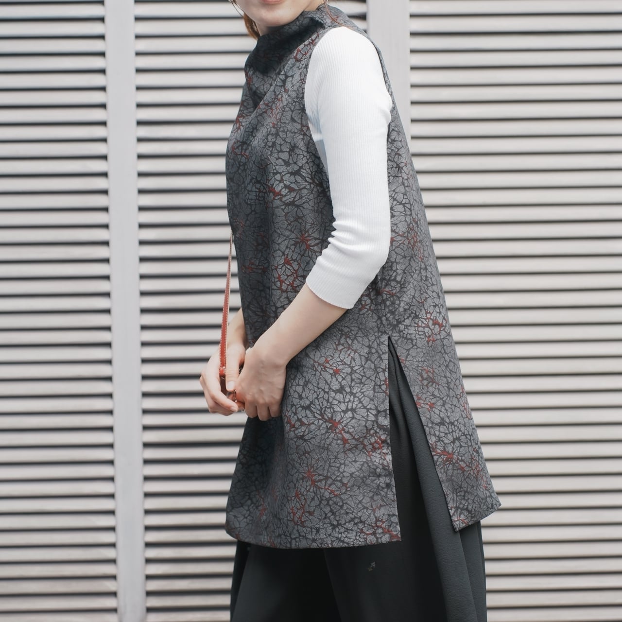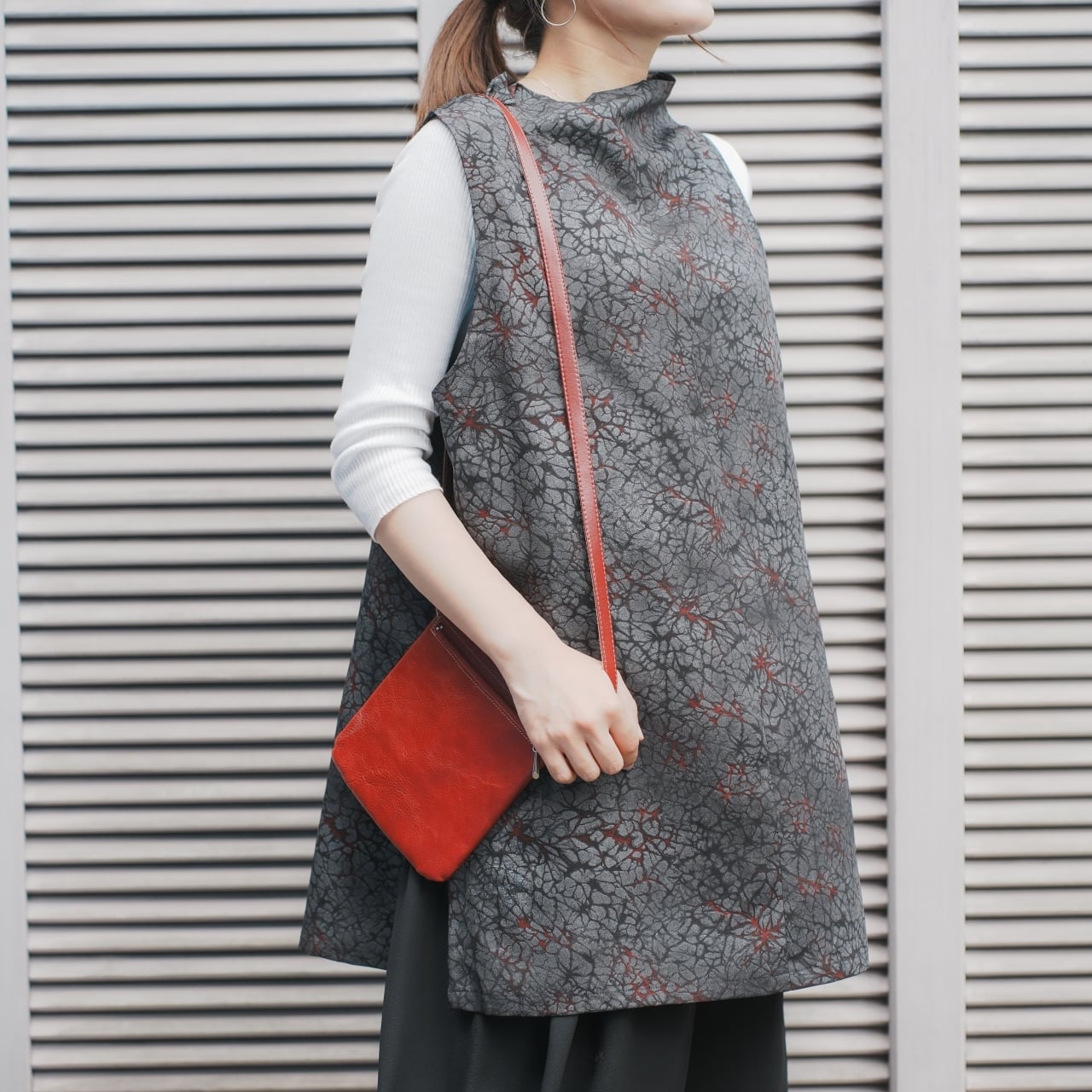ブローチやネックレスなどによって、多様なコーディネートを楽しんでいただける洗練された一枚です。