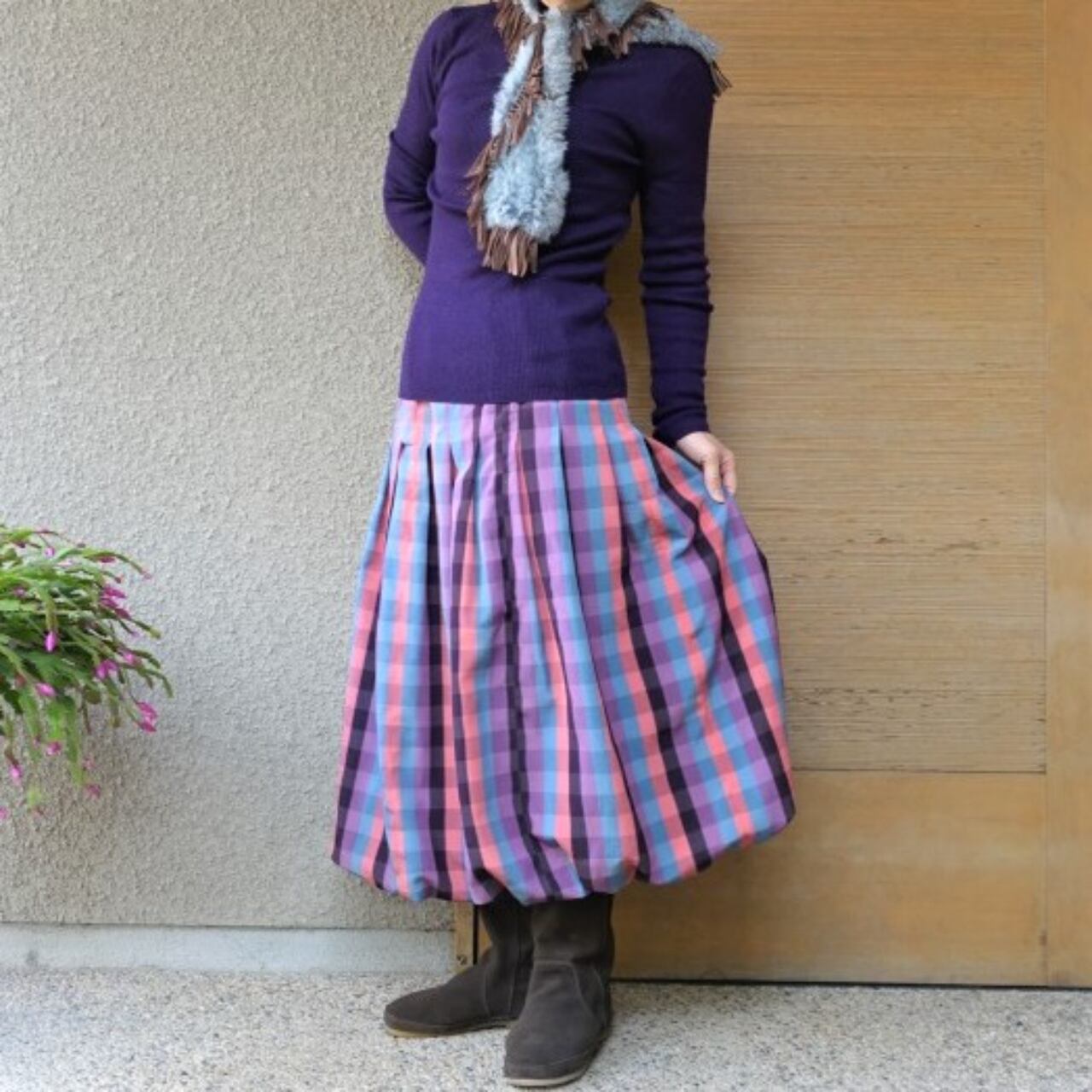 甘い色合いのチェック柄が大人かわいいバルーンスカート。